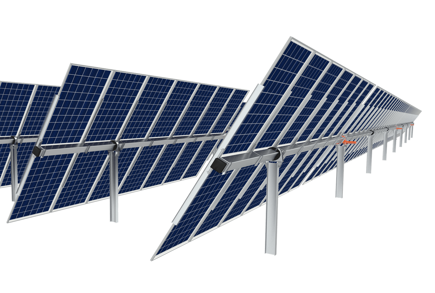 With flexible 2P module configuration, ezTracker D2P 120 requires only nine posts to support up to 120 modules with 4×1,500V-strings.