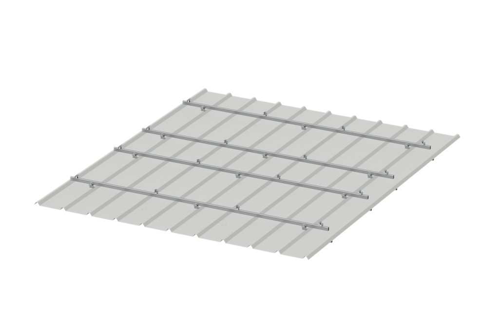 PV-ezRack® SolarRoof™ Aeri Rail Solution is a universal solution designed for PV-module installation on tin roof. Available with penetrative and non-penetrative solution on a large variety of roof types.